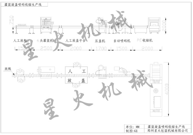 >> 人工放瓶6灌裝壓蓋噴碼PE收縮機