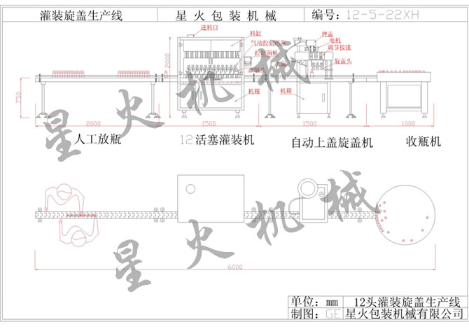 理瓶2頭灌裝真空旋蓋貼標噴碼收瓶及開箱封箱打包生產線
