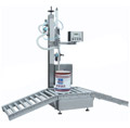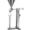 CJ-200B型半自動稱重式液體灌裝機,原理是由稱重傳感平臺在微電腦程序控制下設(shè)定計量。灌裝時先去除皮重。物料在注入容器時先大量快速進料后慢速小計量修正計量。操作者只需講容器防入平臺、口對下料嘴,此時程序啟動,下料嘴下降,打開灌裝閥進料,當(dāng)達到設(shè)定量時自動停止補料,下料嘴上升,完成灌裝過程。