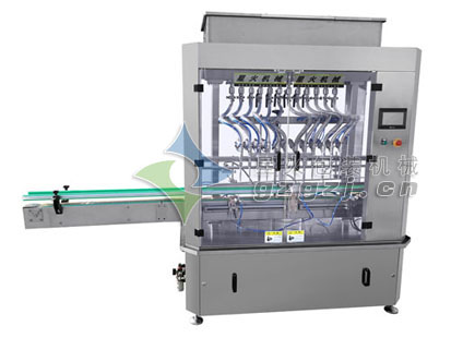 該機是我司研制的多頭全自動液體灌裝機,設備集光、電、氣于一體,由PLC配合人機界面(觸摸屏)控制,從進瓶、定位、灌裝、出瓶等動作均全自動完成。采用直流式灌裝,與物料接觸部分均采用優質不銹鋼和食品級材料制成,符合食品衛生要求;自動化程度高,性能穩定可靠,生產速度快,灌裝精確,操作簡單、調整方便,適應性強等特點。
