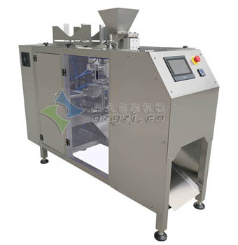1、本機功能:流體、半流體的輸送,袋成形,重量調節、真空封口、切斷、計數等功能;采用微電腦控制光 電跟蹤糾編系統,配用高精度步進電機,精確每個包裝袋圖案的同一位置,控制系統完成整機的同步、定長、定位及速度,自動診斷故障功能。可選擇配裝色帶打碼 機或鋼印打碼裝置。
